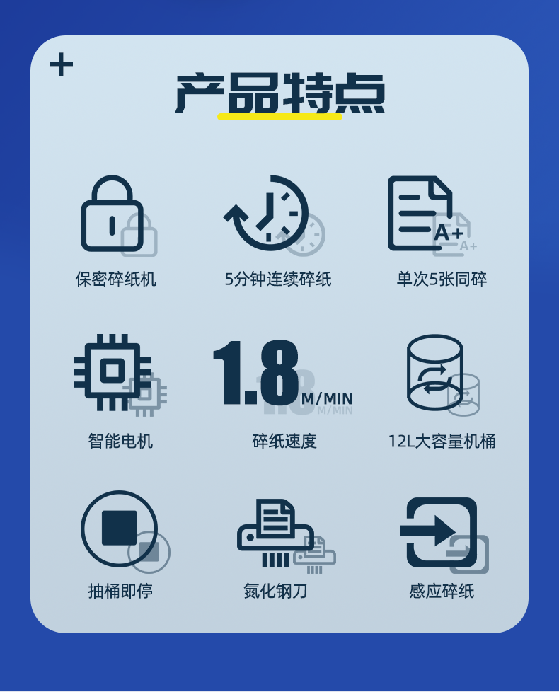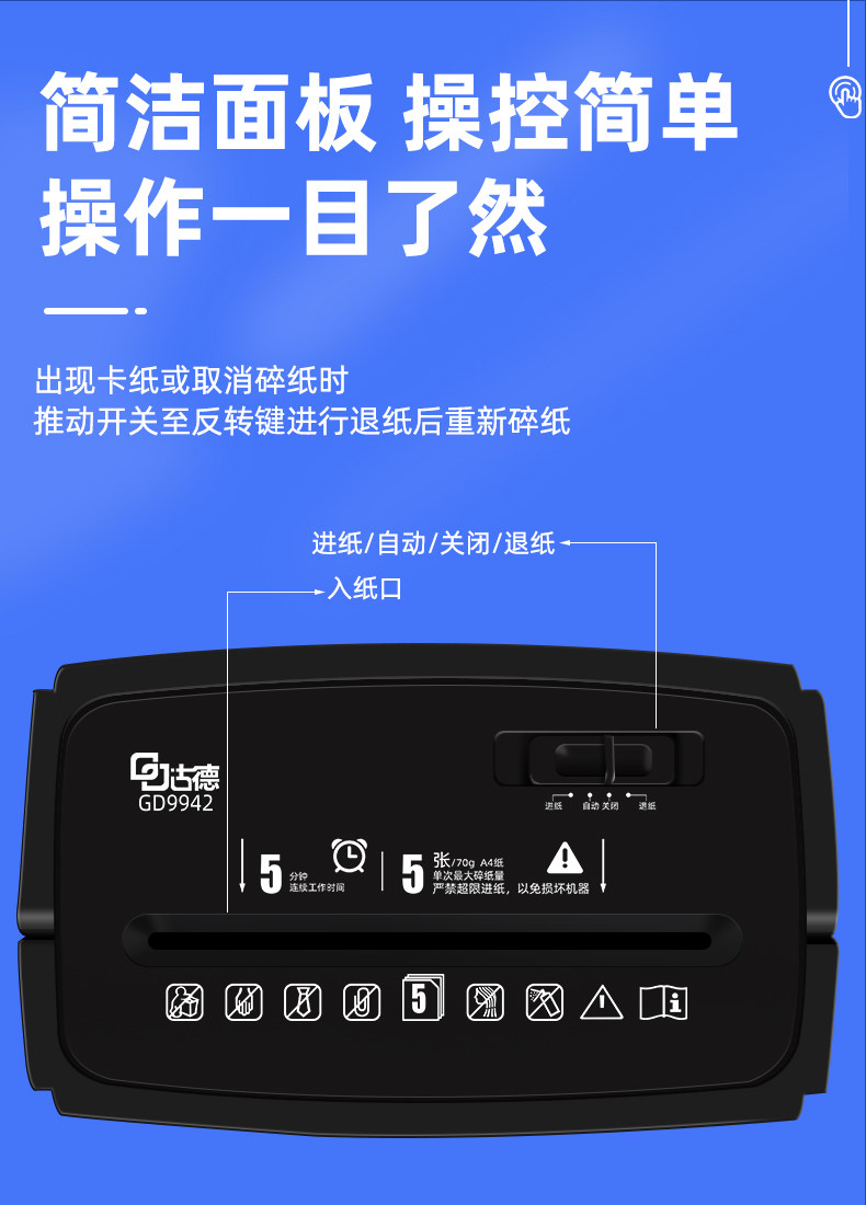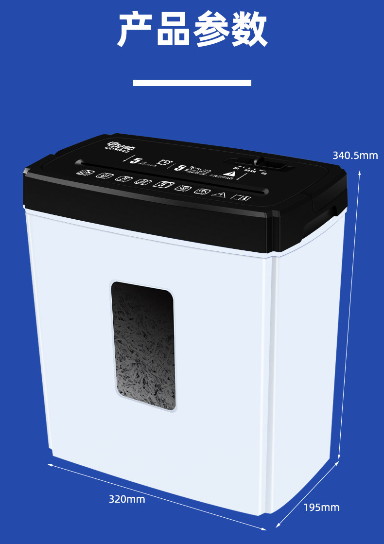 说明(勿拍):时尚外观.4级保密.5张同碎.12升桶.5分钟连续碎纸