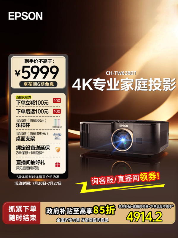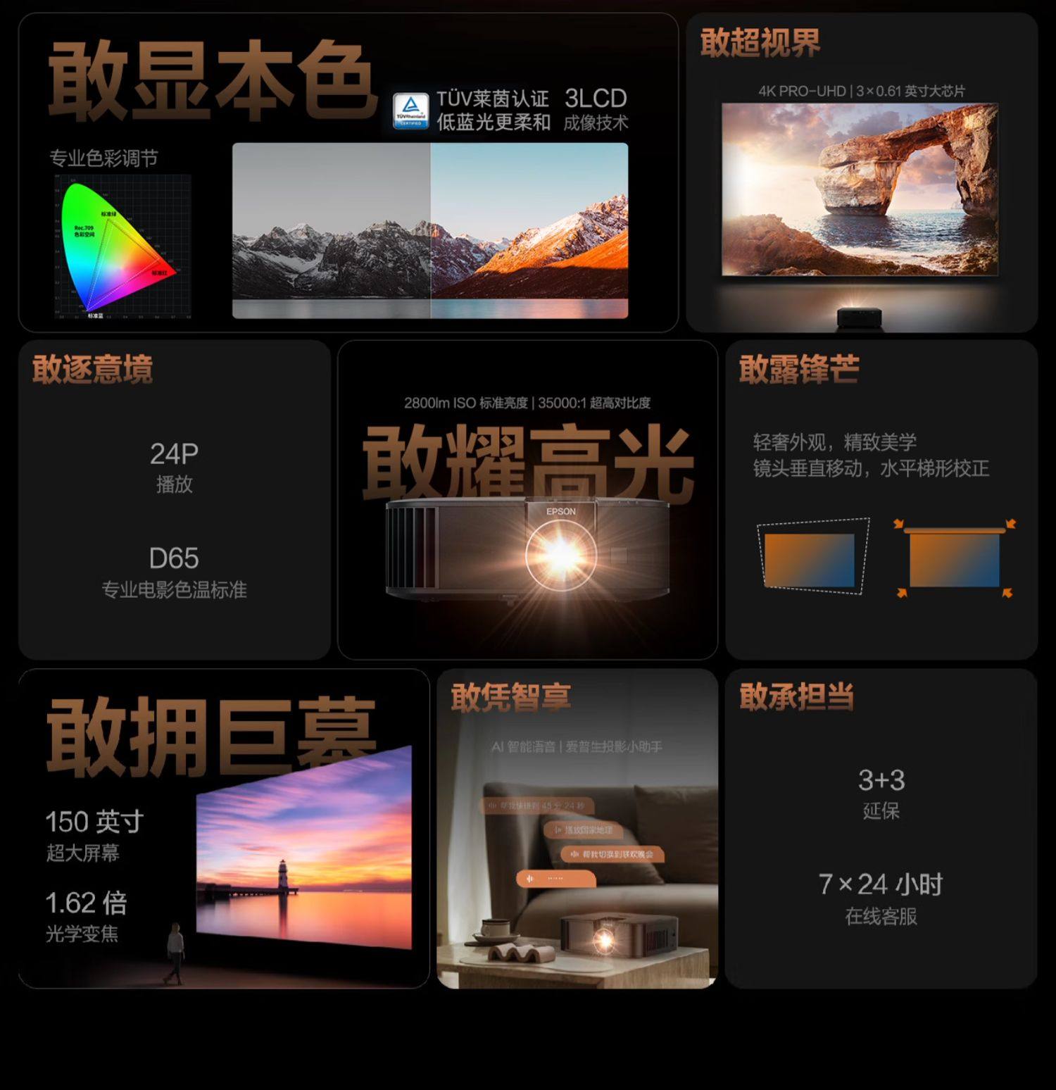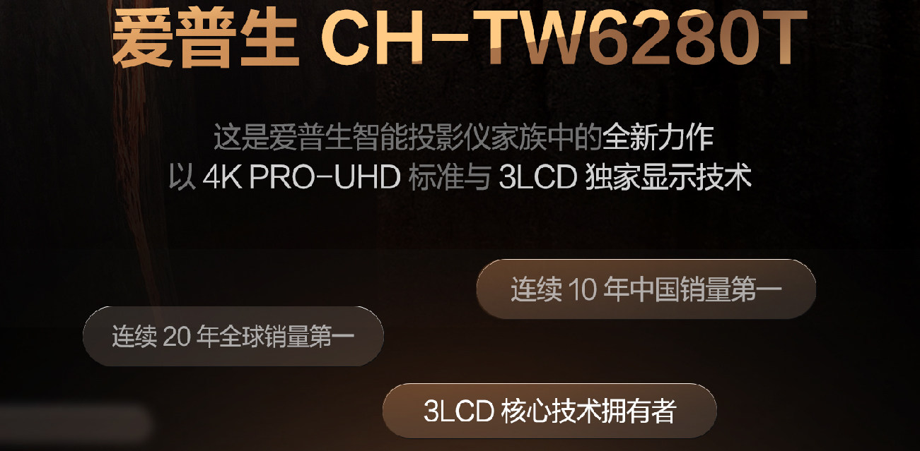 商品名称:【政府补贴 立减15%】爱普生(Epson) CH-TW6280T专业4K家庭智能投影仪大范围镜头位移