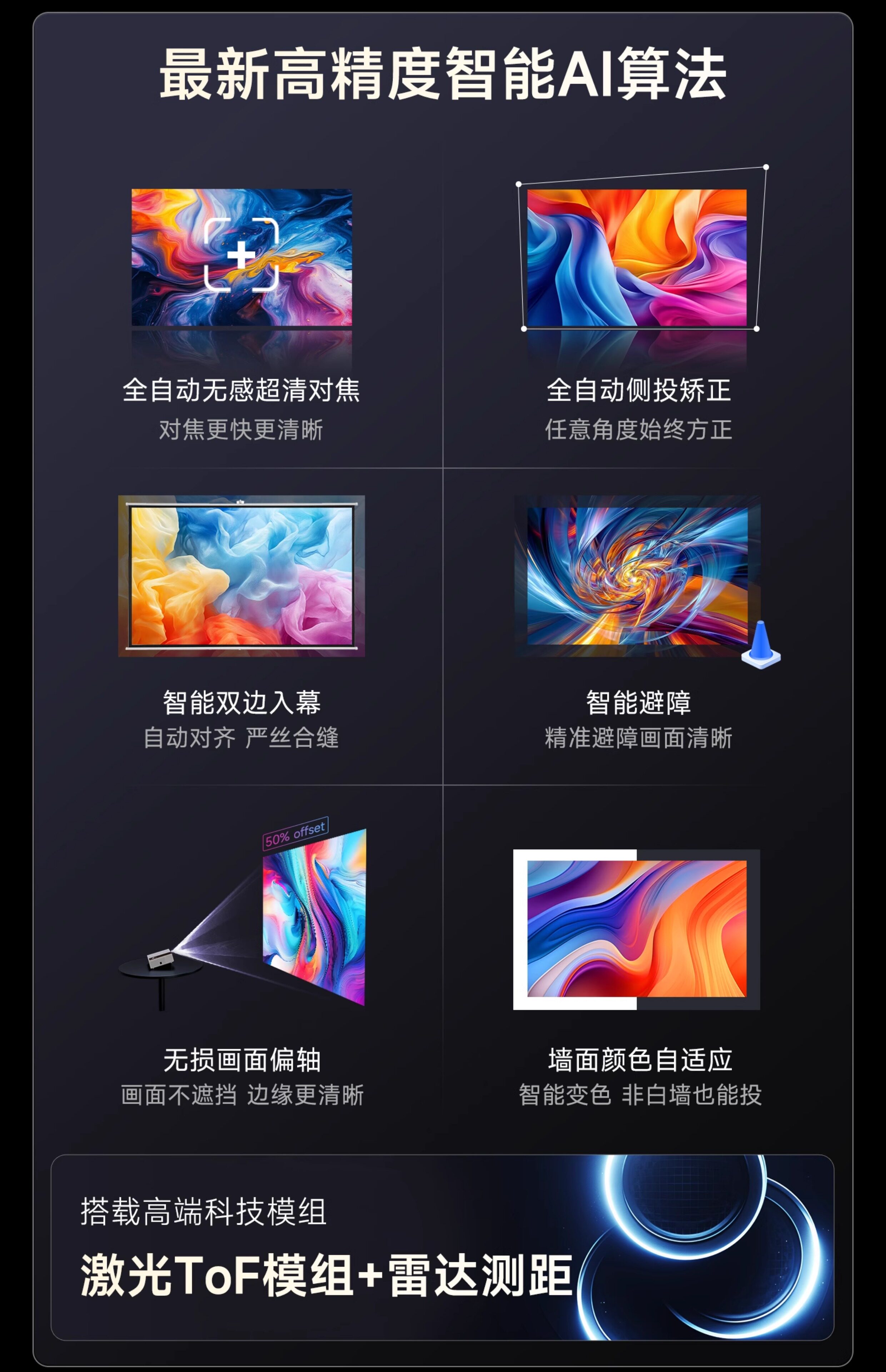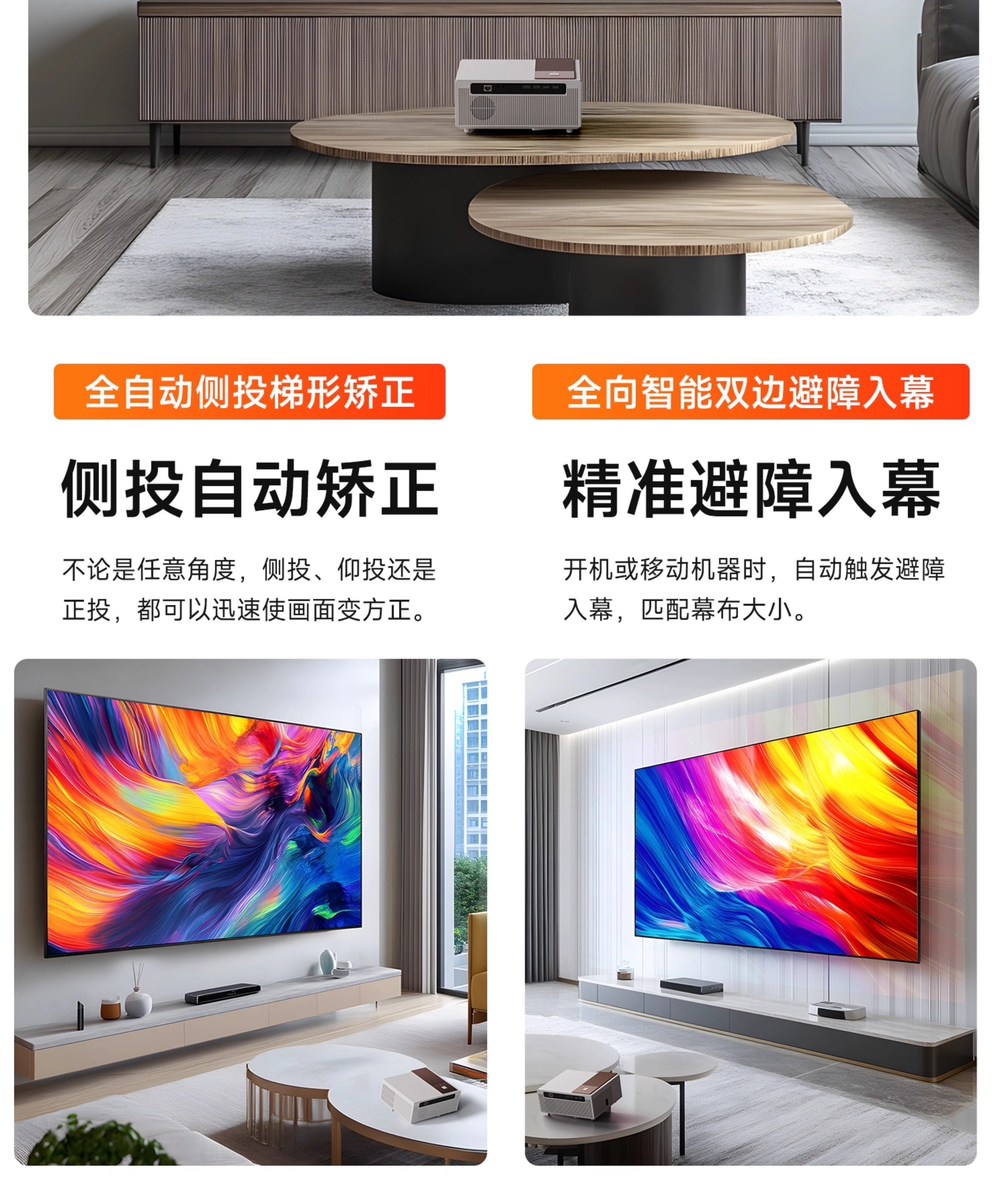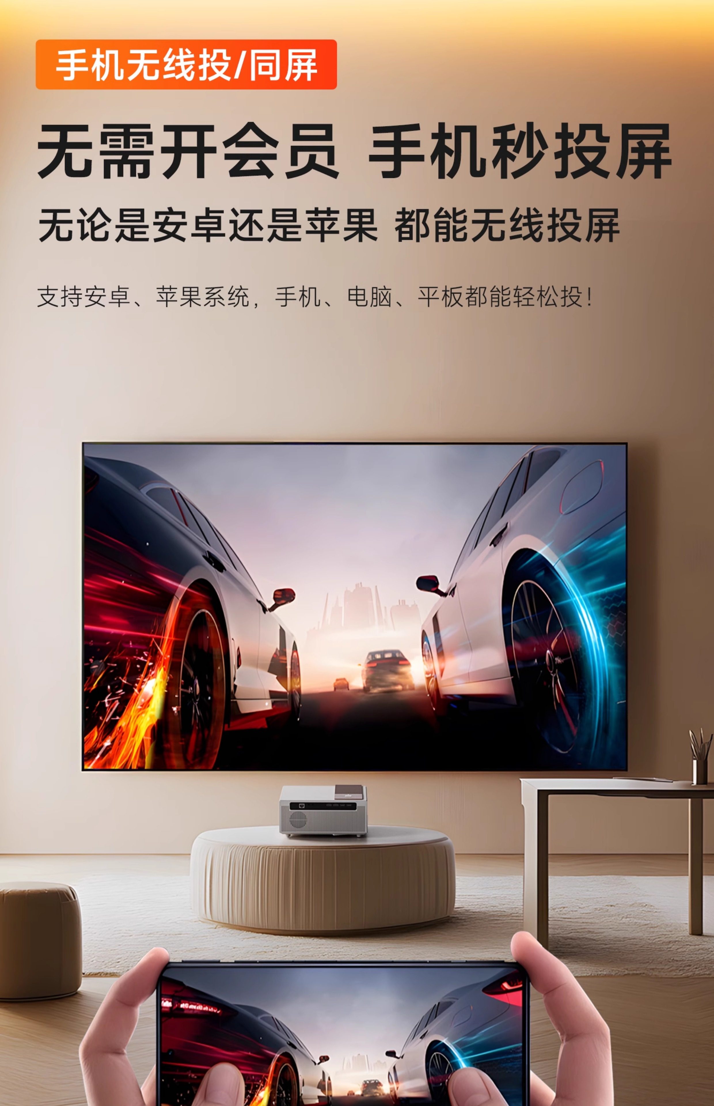 2025新款高流明投影仪家用超高清4k支持白天强光直投办公用会议激光投影机可连手机家庭卧室酒店民宿户外专用