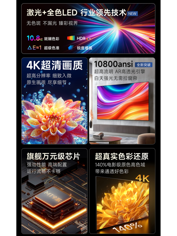 商品名称:2025新款高流明投影仪家用超高清4k支持白天强光直投办公用会议激光投影机可连手机家庭卧室酒店民宿户外专用