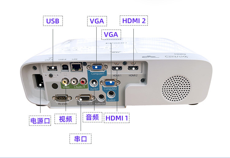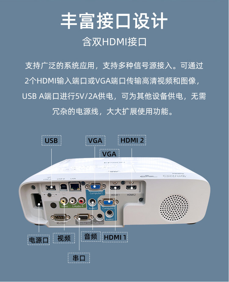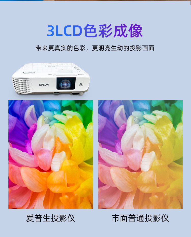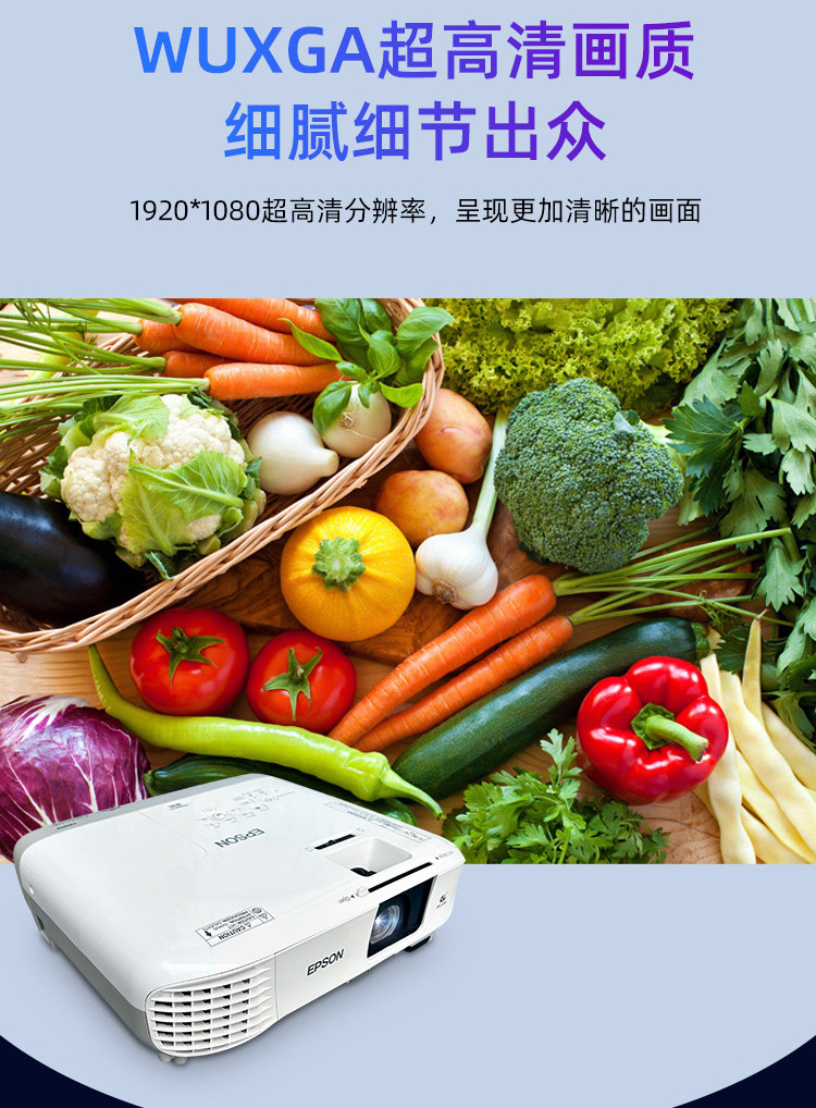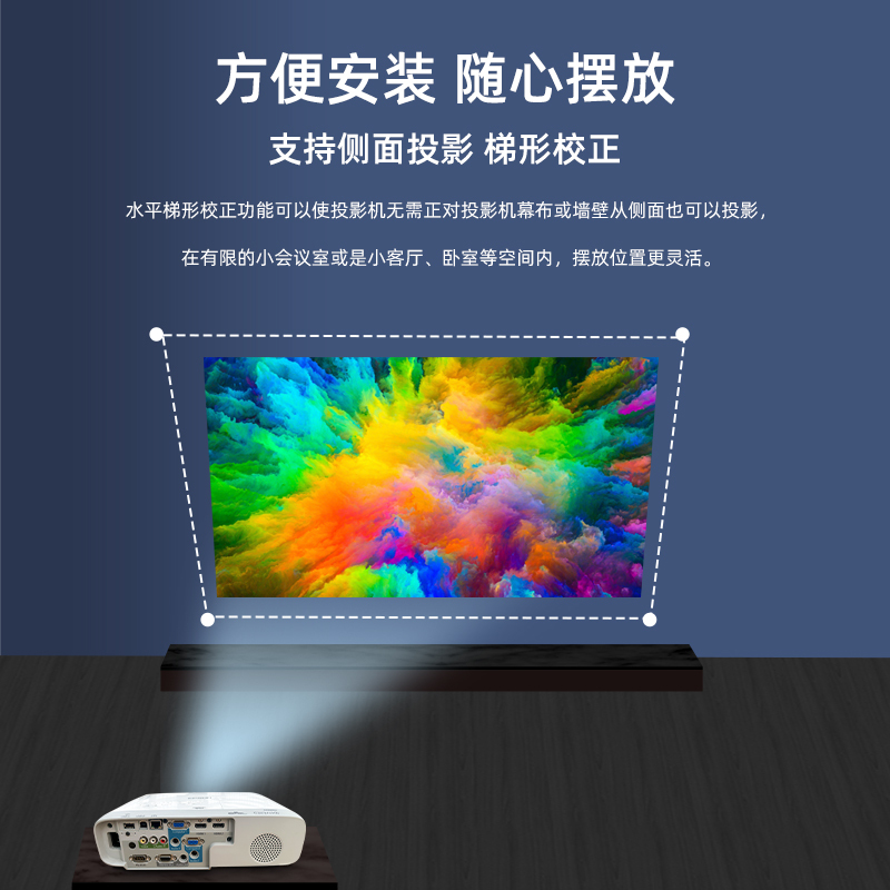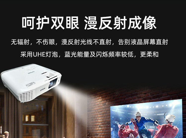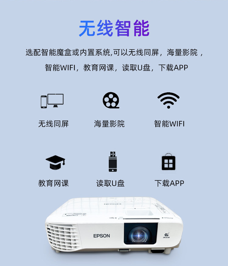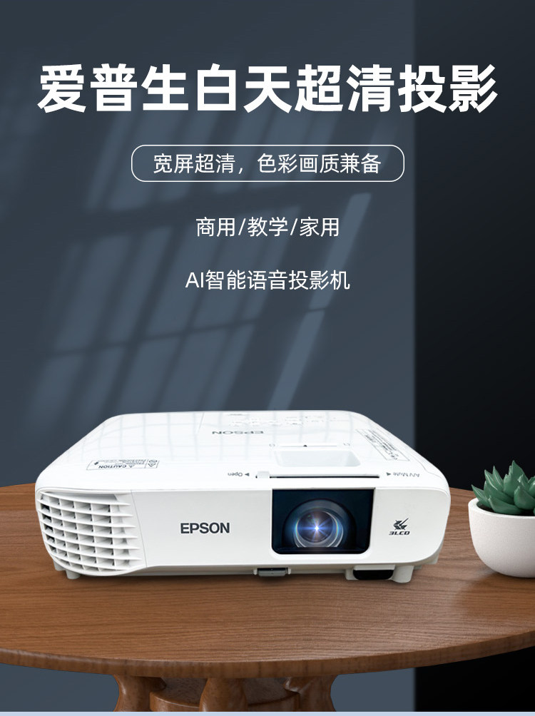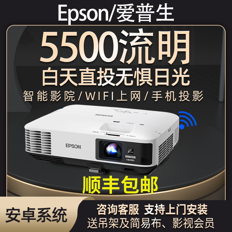 2025新款爱普生超清投影仪家用卧室投墙教学办公用会议培训KTV酒店民宿服装店手机无线投屏U盘白天日立投影机
