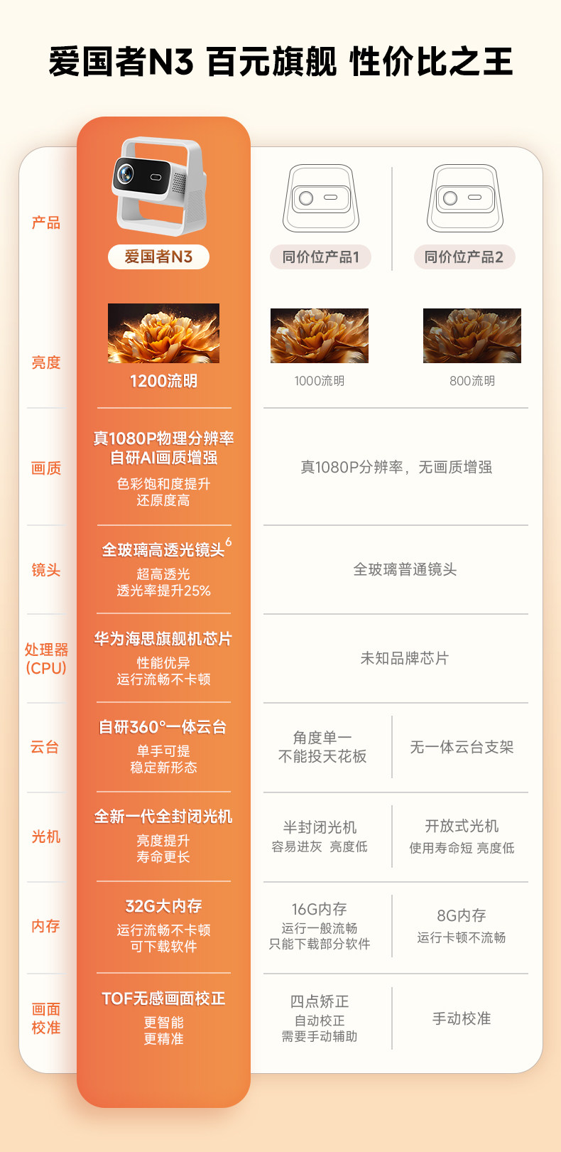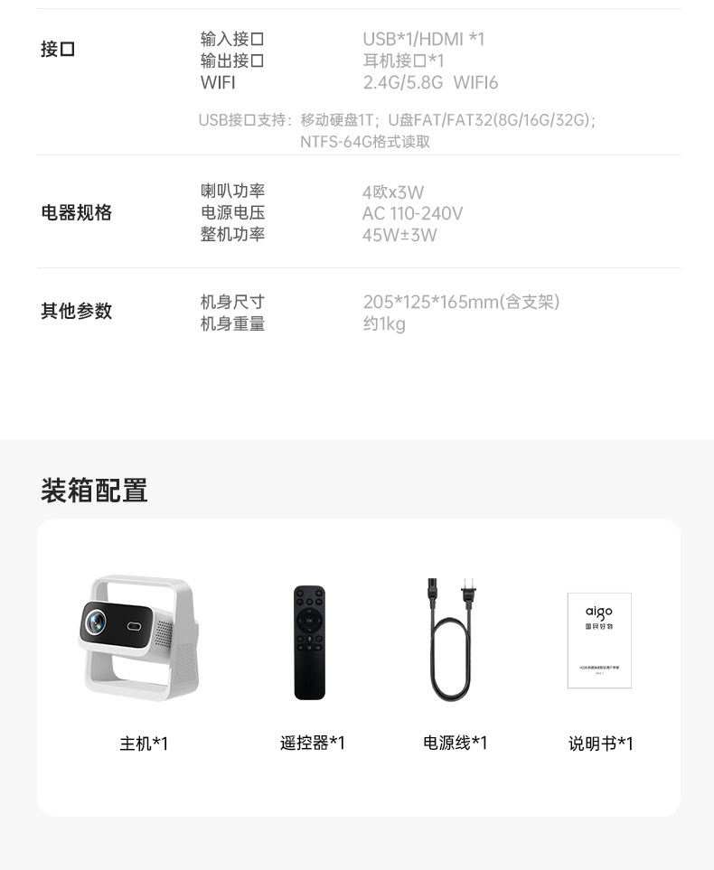 商品名称:爱国者2025新款N3投影仪家用超高清卧室客厅家庭手机办公会议投屏幕布一体机投影机电视机放映机智能壁挂支架