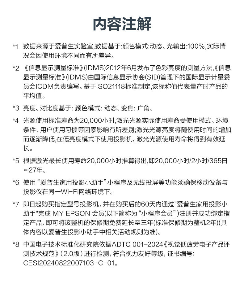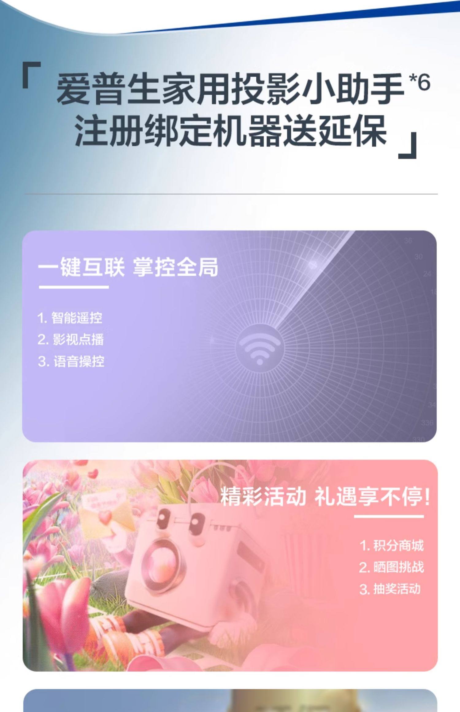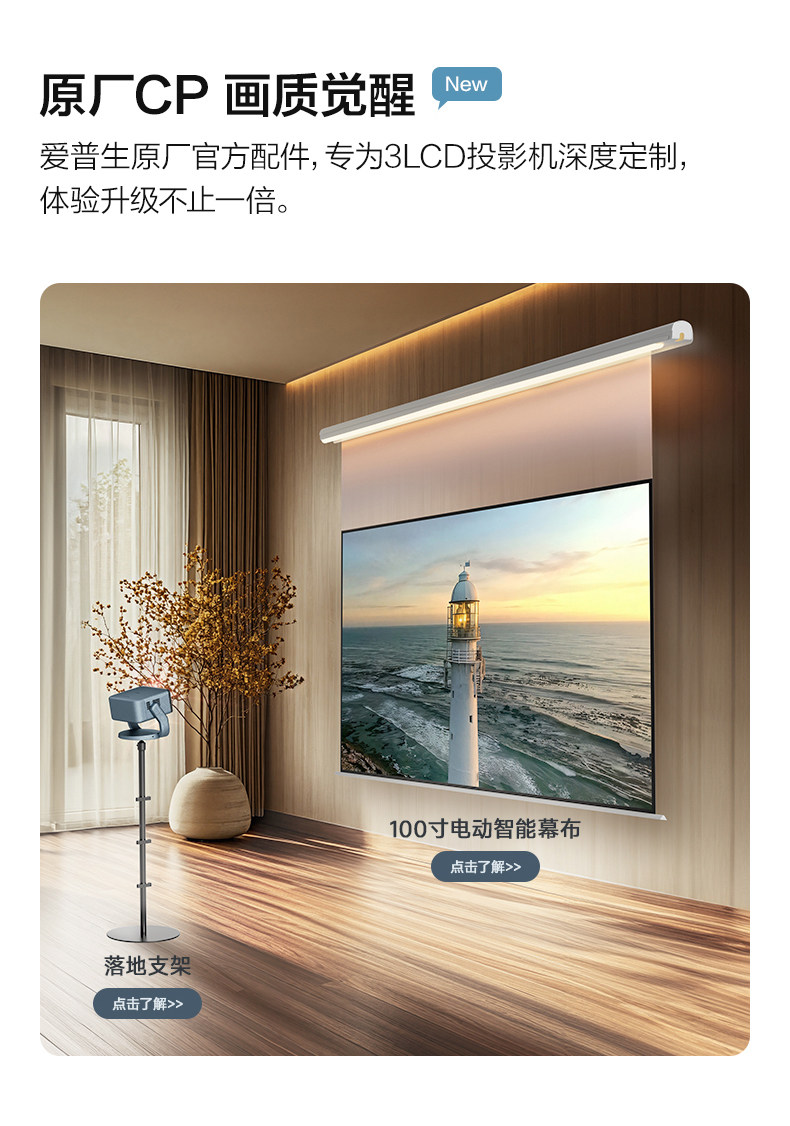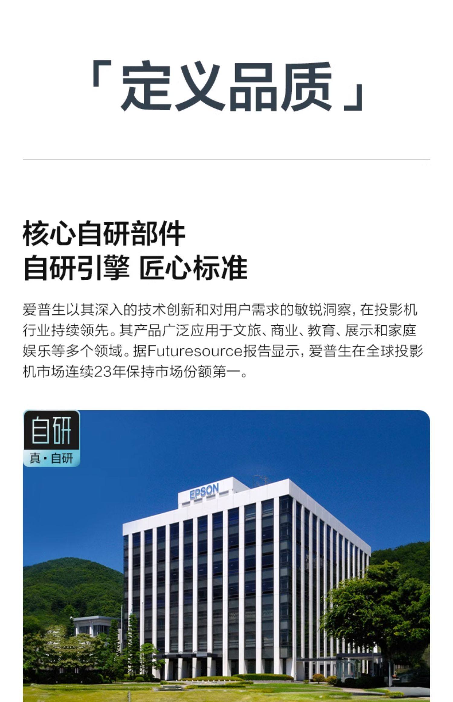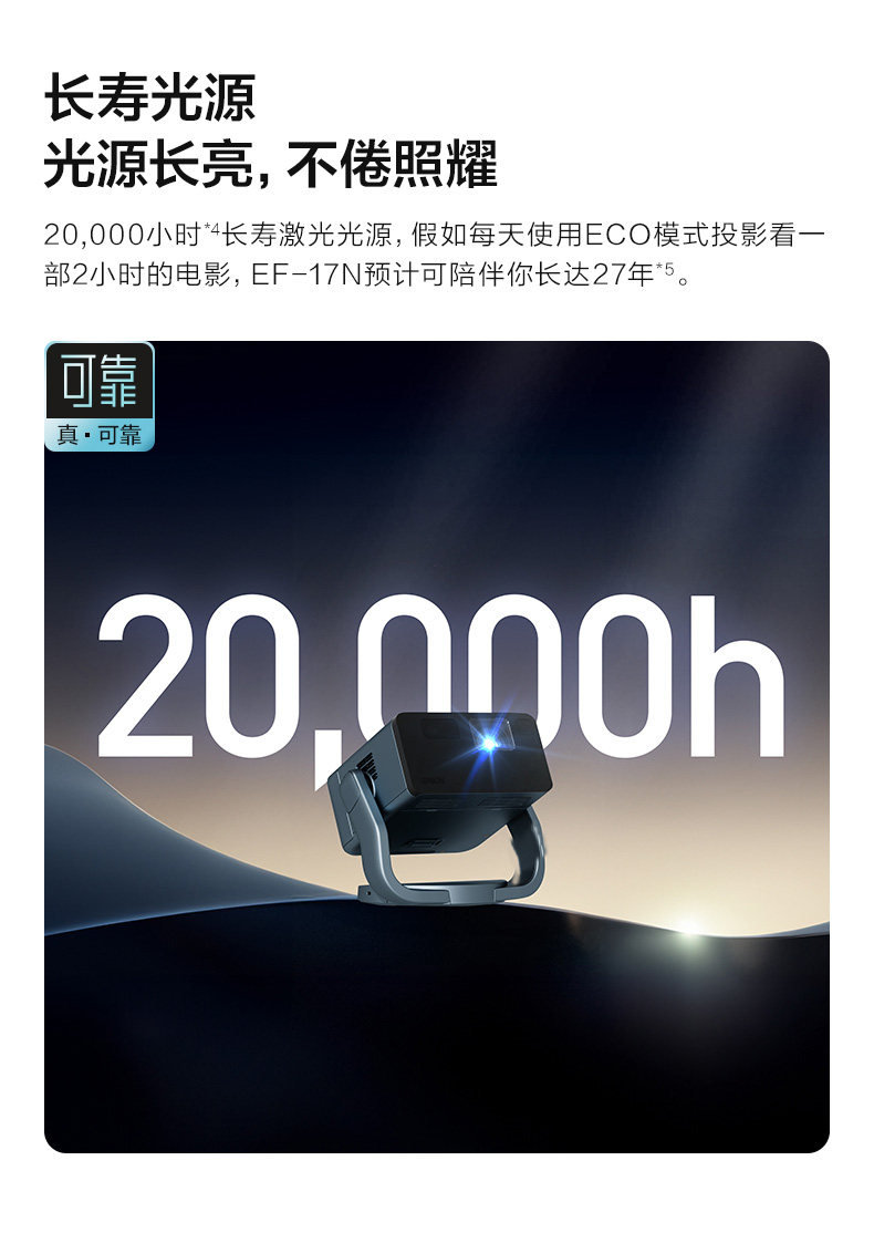 商品名称:【政府补贴 立减15%】爱普生(EPSON)EF-17N 投影仪3LCD智能激光云台投影机家用超高清卧室客厅护眼1080P