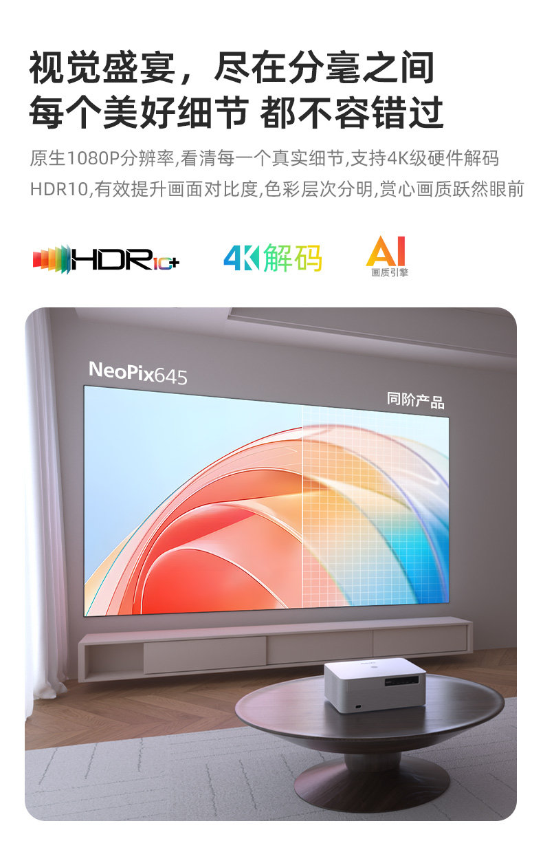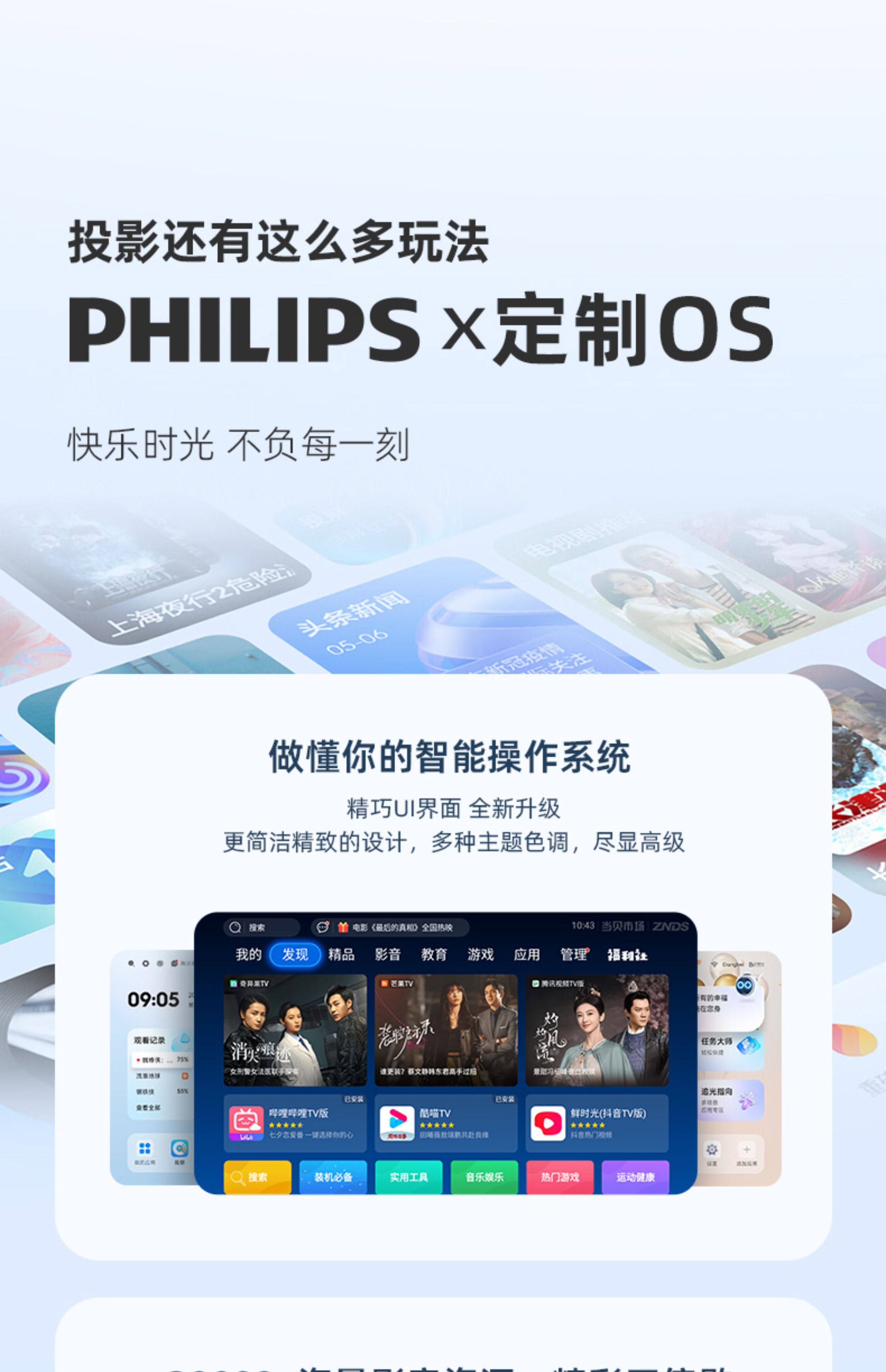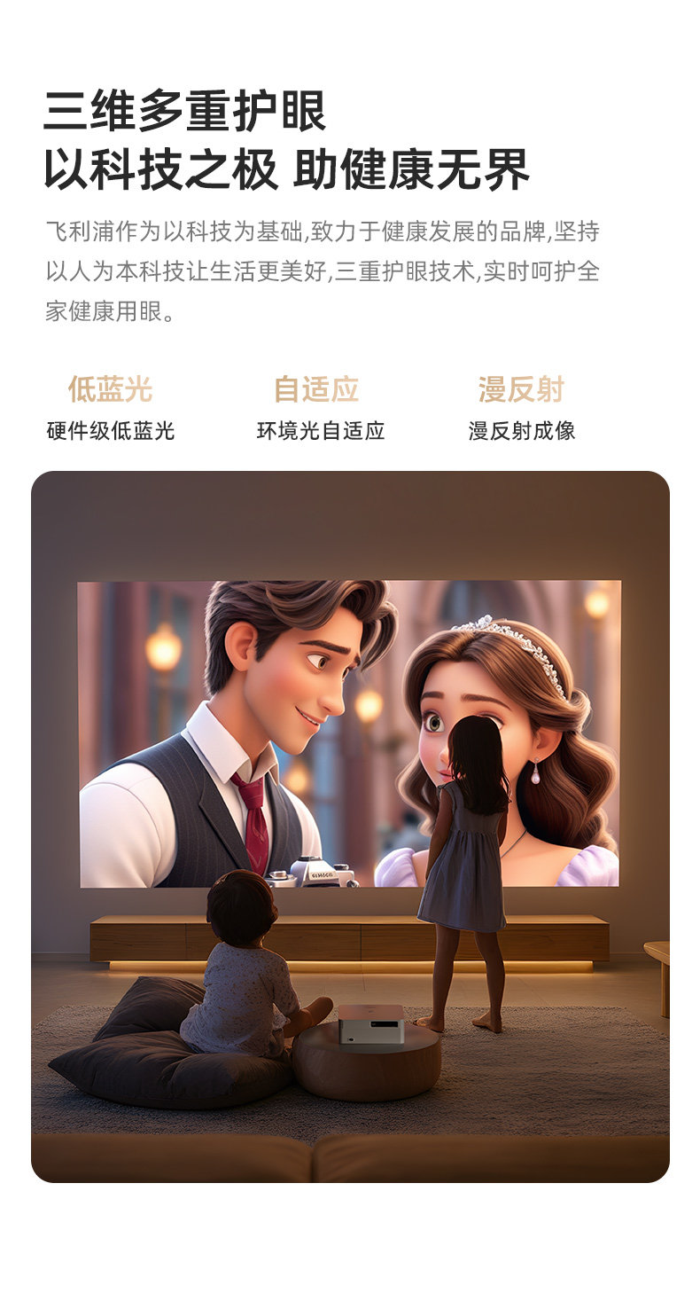 Philips/飞利浦25新款投影仪家用超高清家庭影院卧室客厅1080p会议手机投屏激光投影机小型配菲涅尔硬屏幕布