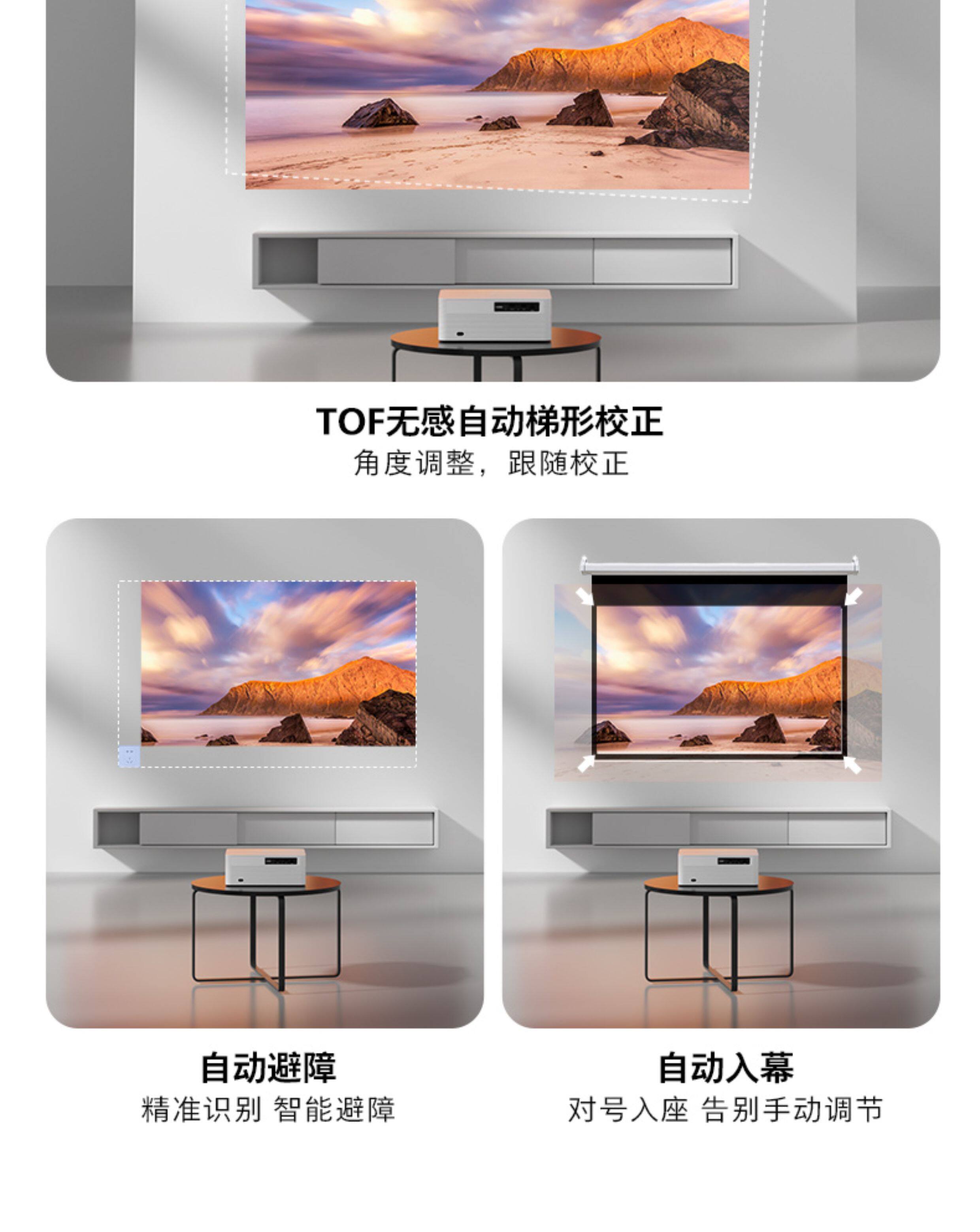 PANDA熊猫Y6Pro自动云台调焦矫正避障高清高亮投影机家用客厅民宿5G强光宿舍投影