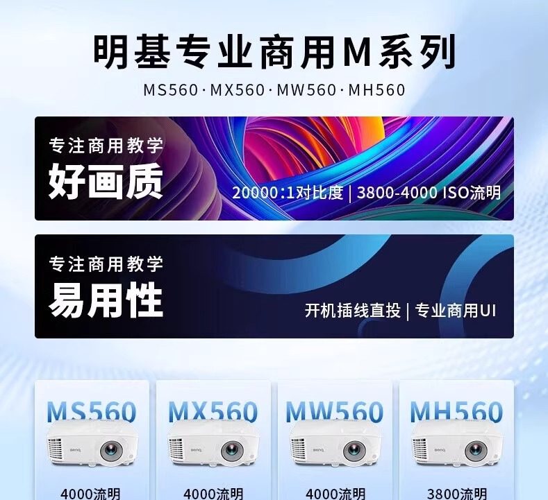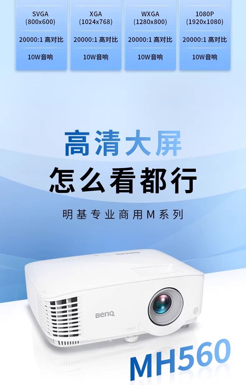 商品名称:明基投影仪MX560/MH560/MH550/超高清高亮办公用会议投影机家用超高清短焦投影仪政府补贴白墙白天可手机直投