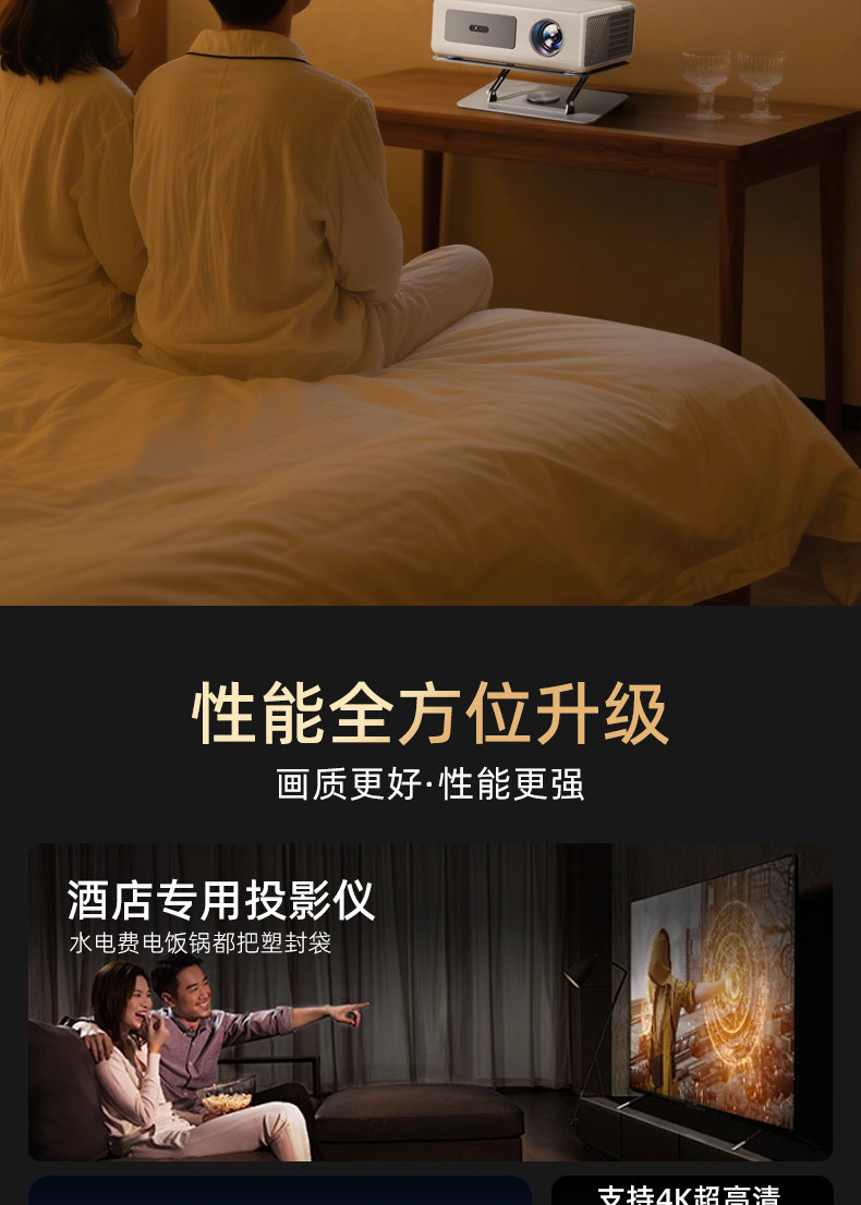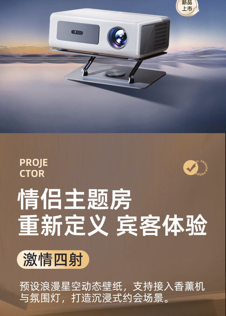 新款2025年酒店民宿商用投影仪超高清私人影院足浴KTV专用可连手机投屏高亮办公用会议投影机家用电视一体机