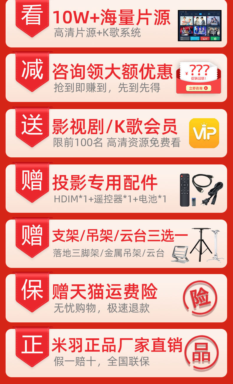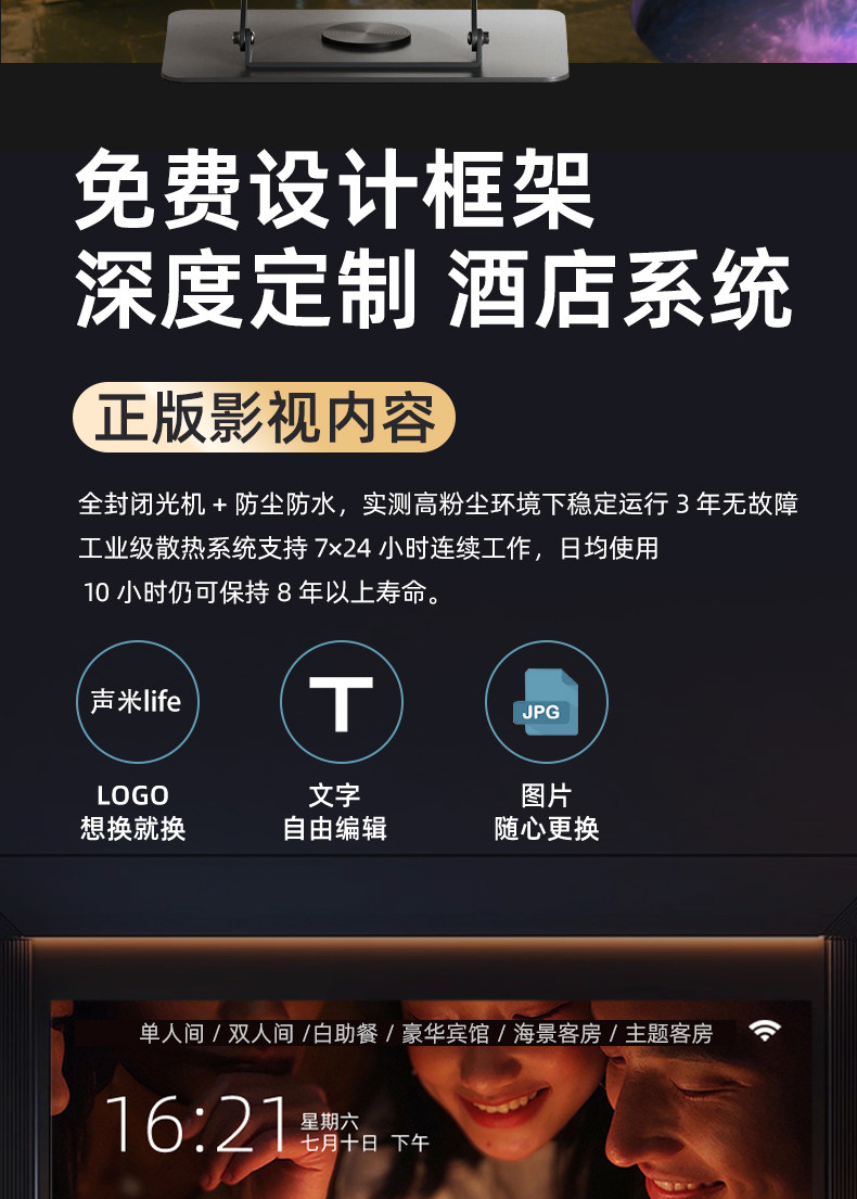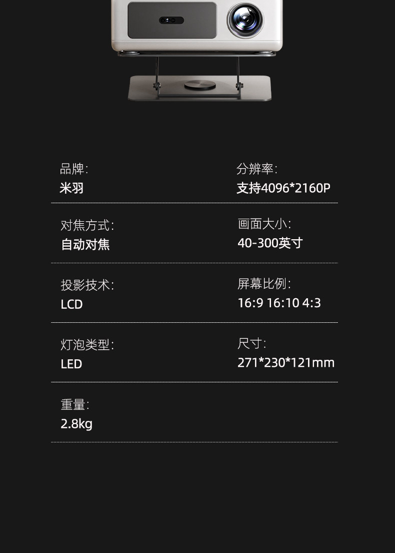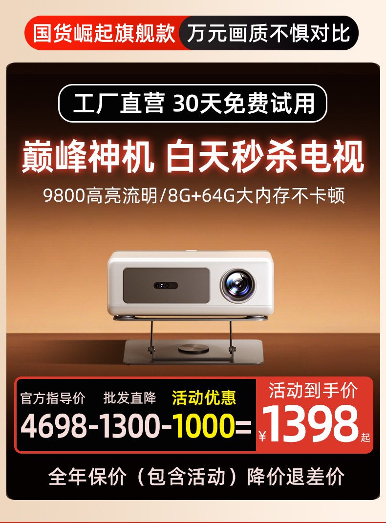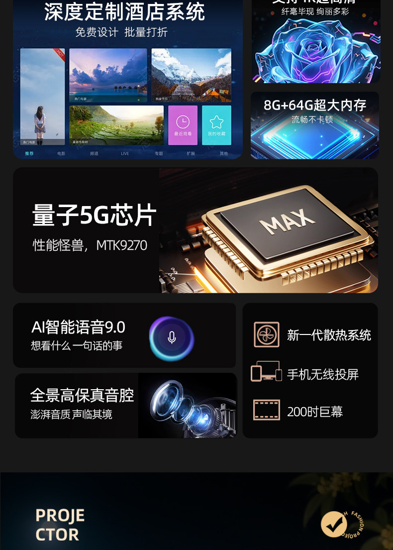 商品名称:新款2025年酒店民宿商用投影仪超高清私人影院足浴KTV专用可连手机投屏高亮办公用会议投影机家用电视一体机